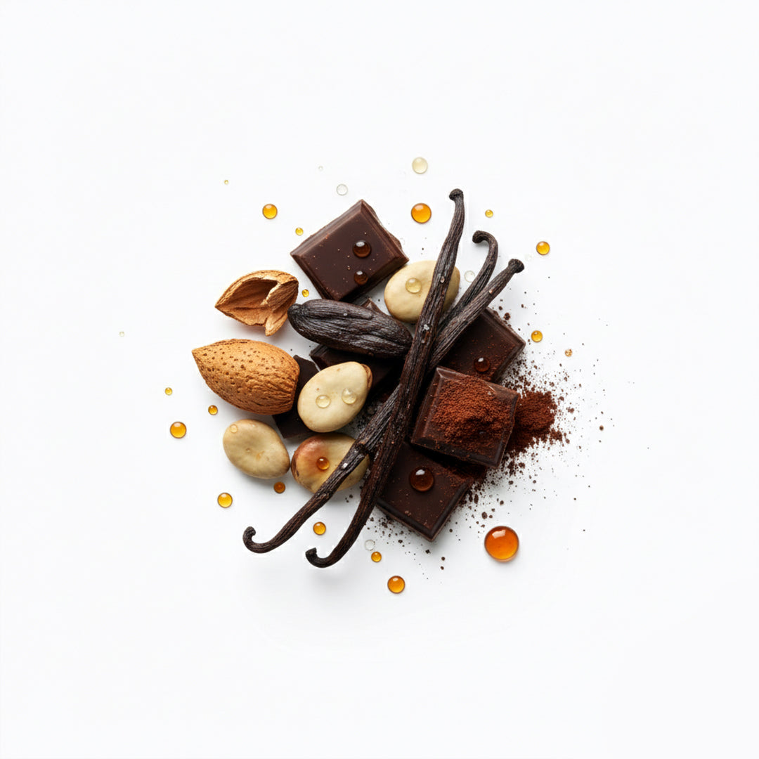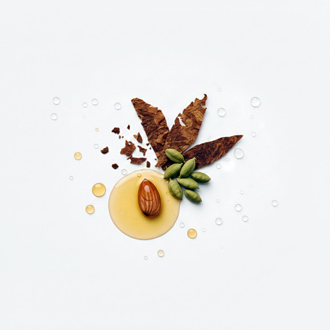 Sensation Amund is an intense, enveloping fragrance, conceived as a journey through warm contrasts. It opens with the creamy elegance of almond oil, spiced with cardamom and deepened by tobacco leaves. At its heart, the dark sweetness of almond hull meets vanilla, tonka bean, and chocolate, creating a sophisticated gourmand signature that is never excessive. The base of aromatic woods and dry tobacco seals the fragrance with character and lasting depth.