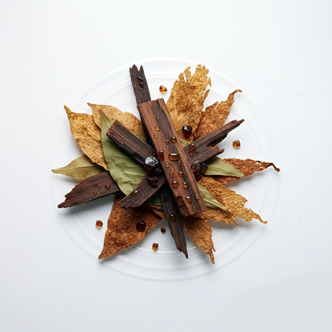 Base notes: aromatic woods and dry tobacco
